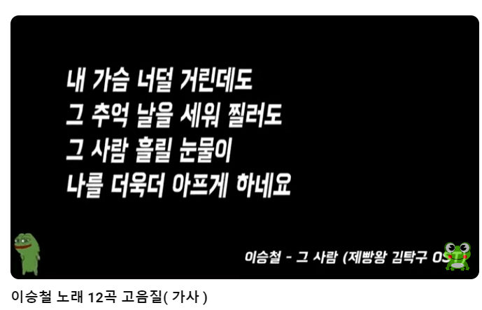 노래 감상 하면서 겜들 하세유 작성자 정보 소백산쪽지보내기 메일보내기 자기소개 아이디로 검색 전체게시물쪽지보내기 메일보내기 자기소개 아이디로 검색 전체게시물 작성 작성일 2025.07.03 13:26 컨텐츠 정보 190 조회 1 댓글 목록 본문 같이 노래 한곡 들어보시죠 ~~~~승철이 행님 노래 잘하신다 ㅉㅉ 관련자료 이전 늦잠잤네 조졌네~ 작성일 2025.07.03 13:47 다음 아까 하루 한 게임인데... 작성일 2025.07.03 12:53 댓글 1 정희님의 댓글 정희쪽지보내기 메일보내기 자기소개 아이디로 검색 전체게시물쪽지보내기 메일보내기 자기소개 아이디로 검색 전체게시물 작성일 2025.07.03 21:40 요즘 제빵왕 김탁구 드라마 잠시 보다가 말았는뎅 ㅎ 요즘 제빵왕 김탁구 드라마 잠시 보다가 말았는뎅 ㅎ 로그인한 회원만 댓글 등록이 가능합니다. 목록
